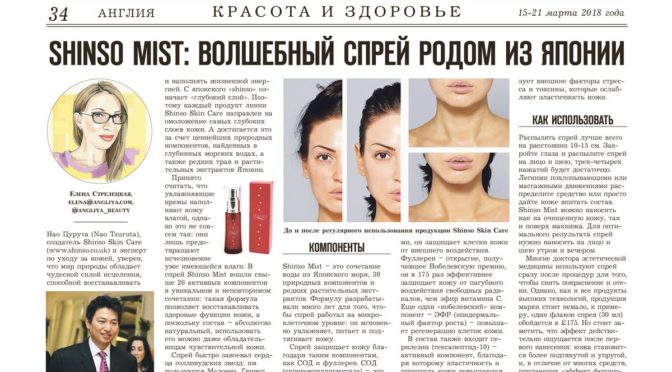 Нао Цурута (Nao Tsuruta), создатель Shinso Skin Care (www.shinso.co.uk) и эксперт по уходу за кожей, уверен, что мир природы обладает чудесной силой исцеления, способной восстанавливать и наполнять жизненной энергией. С японского «shinso» означает «глубокий слой». Поэтому каждый продукт линии Shinso Skin Care направлен на омоложение самых глубоких слоев кожи. А достигается это за счет ценнейших природных компонентов, найденных в глубинных морских водах, а также редких трав и растительных экстрактов Японии.